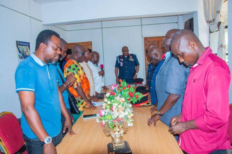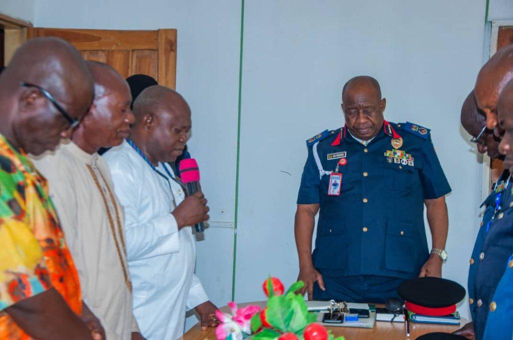 The Conference Secretary General of the Cherubim and Seraphim Movement Church Worldwide Ayo Ni O, Senior Special Apostle Prophet (Dr.) Anthony Olusesan Samaye JP, D. Div. (Hons), MNIM on behalf of His Grace the Spiritual, Prophet Dr. Emmanuel Abiodun Adewale Alogbo JP, FNACM and the Conference at large on Monday, paid a working visit to the Oyo State Command of the Nigeria Security and Civil Defence Corps (NSCDC), where he met with the State Commandant, Augustine Padonu.